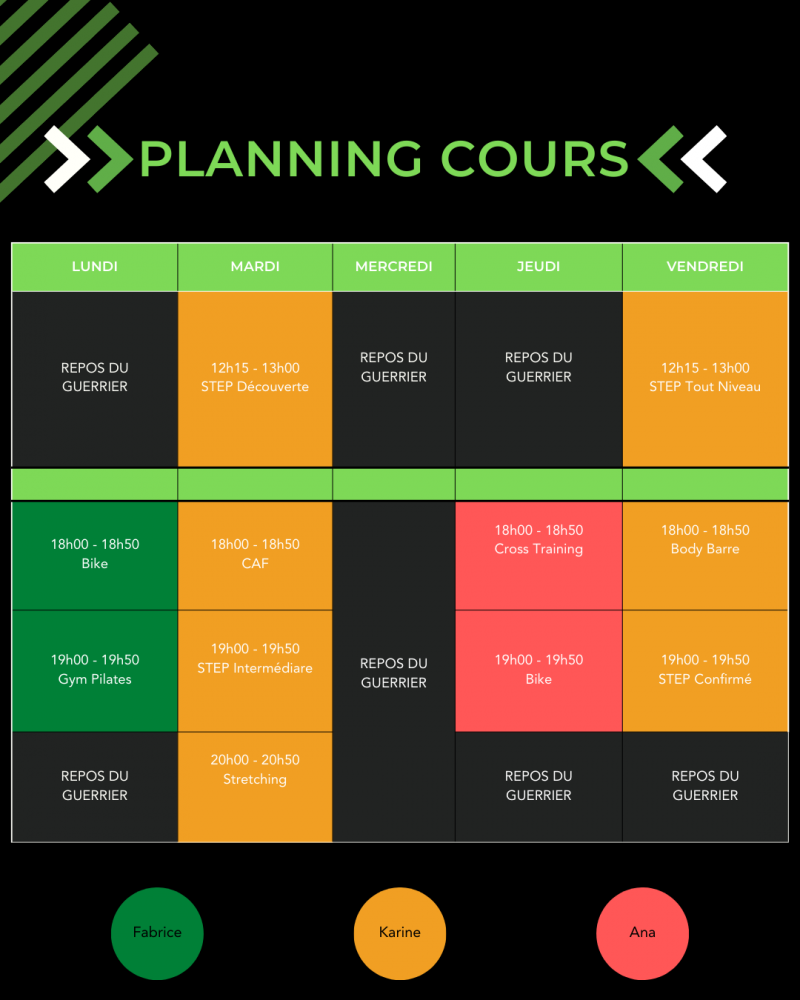Ce nouveau planning de cours sera valable pendant deux mois, et nous sommes impatients de vous annoncer que de nouveaux cours passionnants seront ajoutés à partir de novembre, pour continuer à vous offrir des options variées et captivantes pour atteindre vos objectifs sportifs.